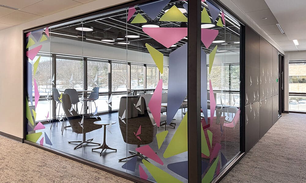 With textured vinyl and precise color, the team built a forest theme that delights young patients.