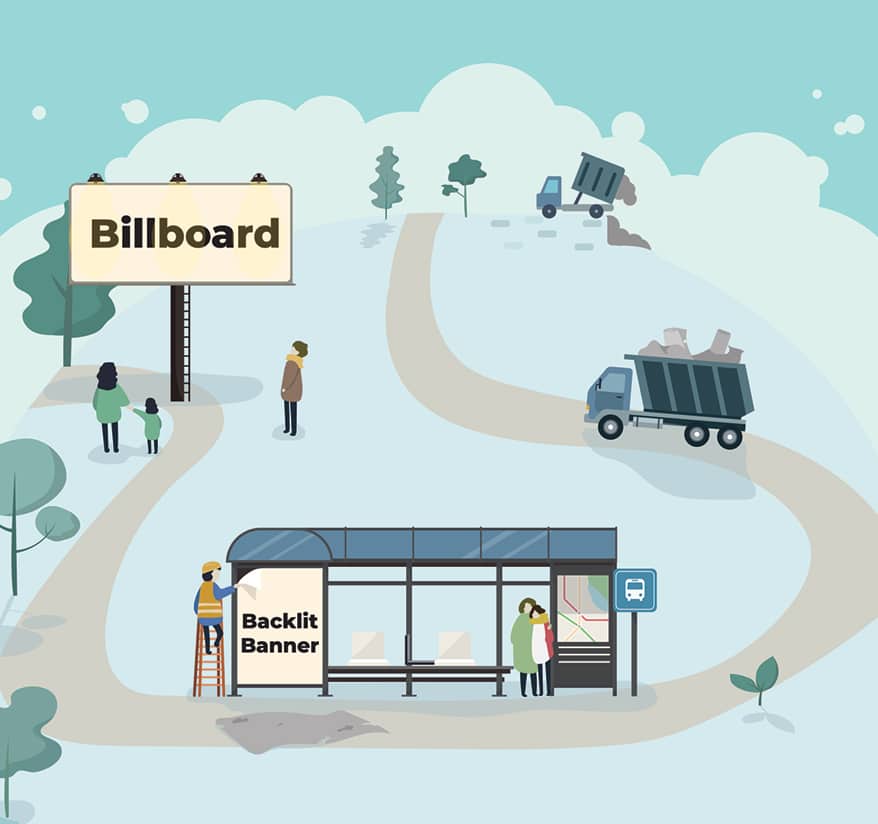 OUT OF SIGHT, out of mind. So goes the old adage. When it comes to signage, event graphics, and out-of-home advertising, however, most marketers hope their brand’s impact will linger in consumers’ memories long after a campaign ends. Unfortunately, it is not only campaign messaging that lingers. Every year in the United States, hundreds of millions of square feet of vinyl banners reach the end of their usefulness, and with not much thought given to their disposal, many end up in landfill or are incinerated. However, while they may be out of sight, their resulting environmental impacts are no longer out of mind.