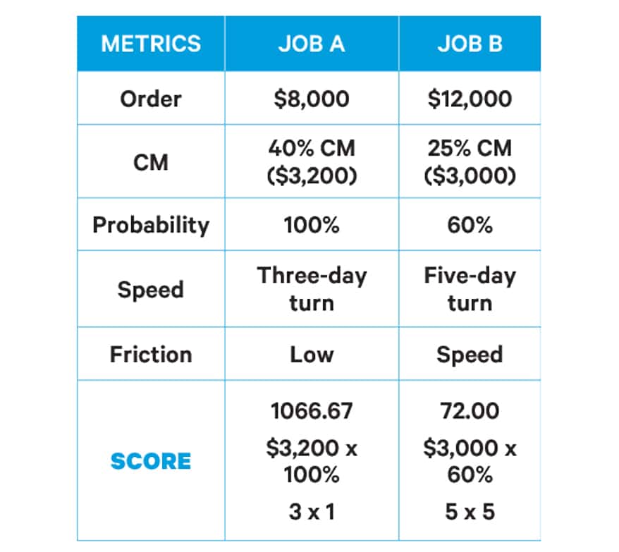 Outcome: Job A’s higher score justifies prioritization despite lower revenue.