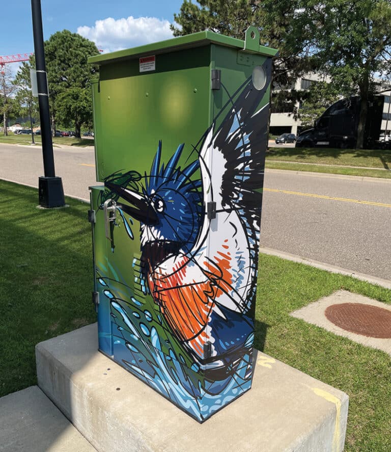Creative Color Graphic & Print Studio (Minneapolis) was awarded a project to wrap nine outdoor electrical utility boxes for the city of Bloomington, located on the Minneapolis outskirts, after a contact deemed them a good fit for the job. Bloomington residents were encouraged to submit artwork to a design contest, which the city later voted on. Creative Color then decided which winning artwork would go on each utility box.